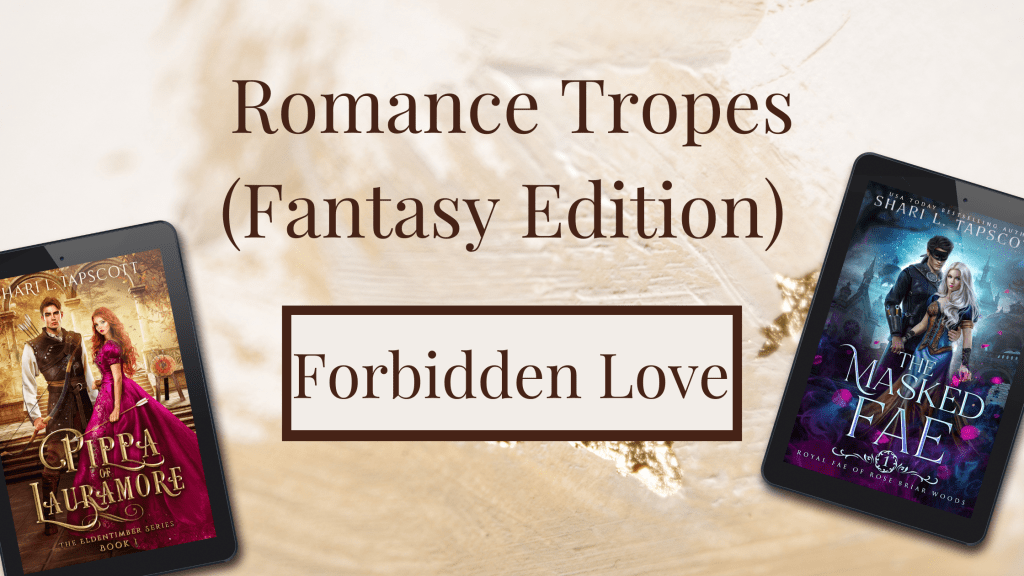 Last week, we talked about a character type. This week, we’re talking about a story type: Forbidden Love. This trope is so fun because it naturally has a lot of delicious tension. You’ll also notice several of my Valiant Knights fall into this category because there is nothing better than placing a noble male character into a forbidden situation–it causes angst, and lots of it.