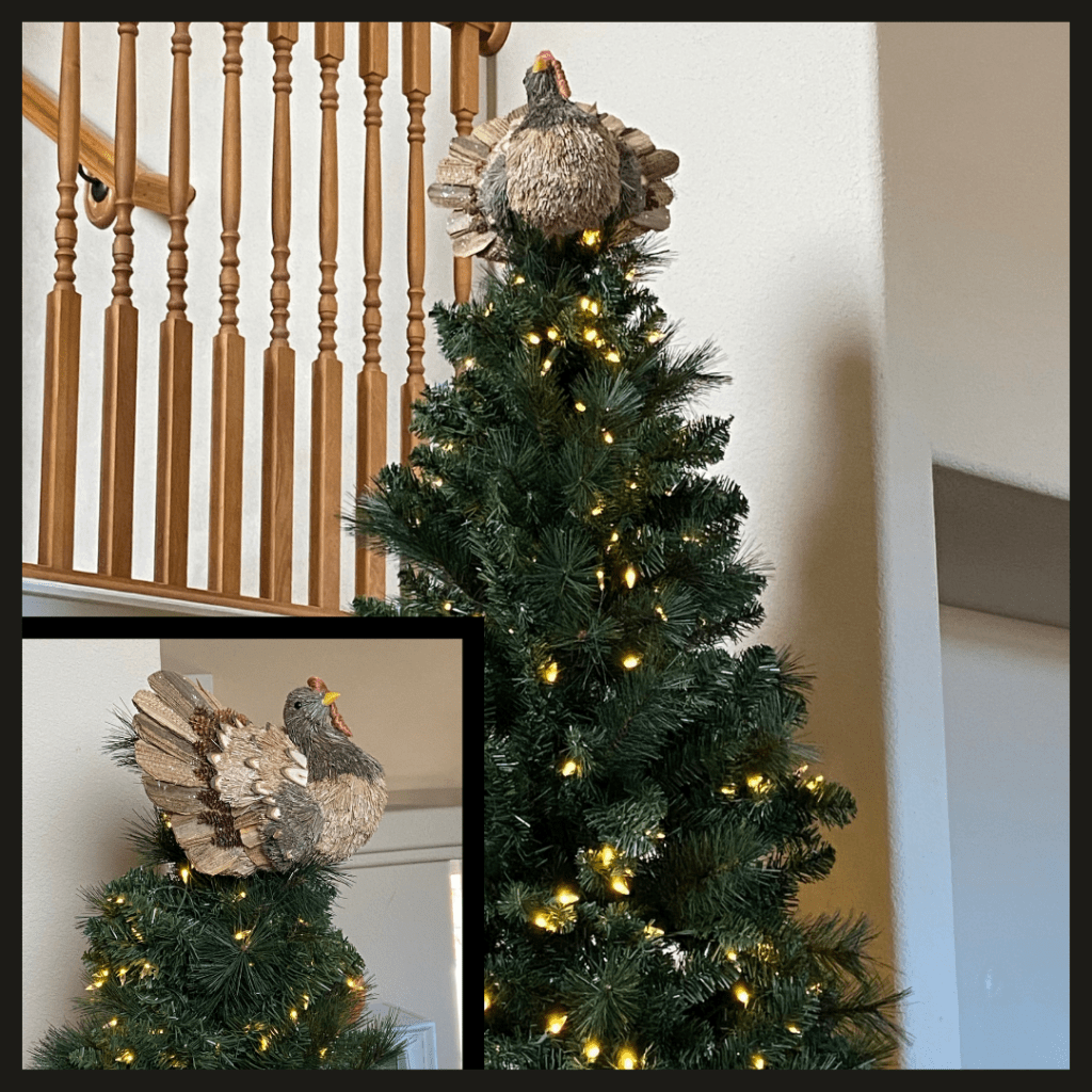 I get antsy to put up decorations before Thanksgiving, which Jake isn’t a fan of, so a few years before we sold our house to travel, I started an epic tradition that we now call the Turkey Tree. Really, it’s just an excuse to put up a tree early. Here’s how it works: I hogtie a turkey to the top of a Christmas tree and BAM, it becomes a Thanksgiving tree. Even while we’re mobile, it’s a part of our holiday traditions. We’re going to put ours up this weekend. It’ll be a little tree, because we don’t have a lot of space, but that’s okay. I’m going to clear a spot for it on my desk. I’ll keep you posted on how many times the cats knock it over.